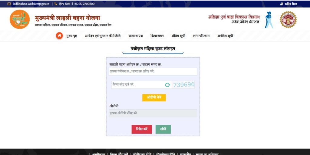सबसे पहले अपने मोबाइल या कंप्यूटर के ब्राउज़र में मुख्यमंत्री लाड़ली बहना योजना की आधिकारिक वेबसाइट cmladlibahna.mp.gov.in खोलें।